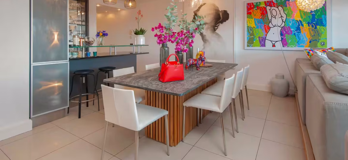 The lounge, dining & kitchen all open plan and spacious. The sea-facing King Size bedroom is a dream. Excellent gym facilities in the complex.