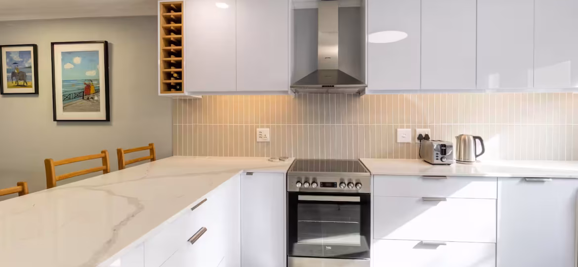 Modern Oceanfront cottage. Discover the epitome of coastal living in this newly renovated, meticulously designed 3-bedroom, 2.5 bathroom cottage located on Marine Drive in the heart of Hermanus. With spectacular ocean views and a prime location, this property offers a perfect blend of modern elegance and convenience for couples as well as families. Whether on a business trip or a holiday getaway, this home is sure to give you what you need for a wonderful memorable stay.